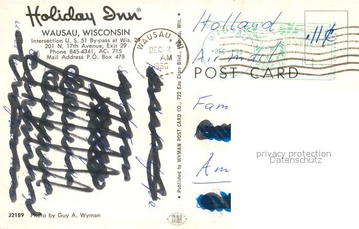 73130590 old postcard Wausau Wisconsin Holiday Inn Schwimmbad postalisch gelaufen Erhaltung siehe scans [KathaD81] KatCode: 14140520000000