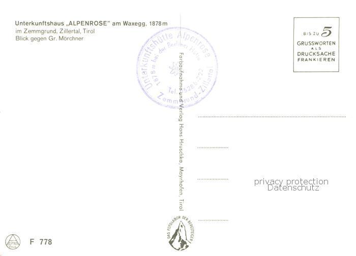 73790141 Waxeggkees Rossruck Unterkunftshaus Alpenrose am Waxegg im Zemmgrund mit Moerchner postalisch nicht gelaufen Erhaltung siehe scans [WerneD78] KatCode: 11390
