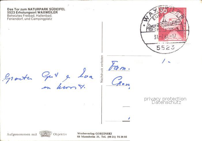 72172907 alte Postkarte Waxweiler postalisch gelaufen Erhaltung siehe scans KatCode: 11110007232322