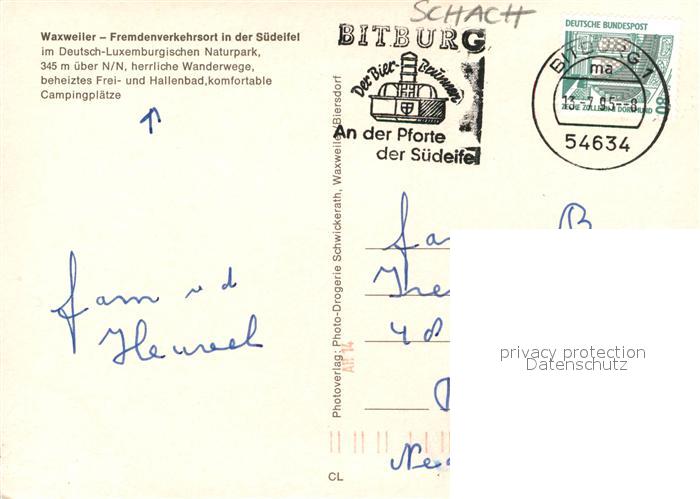 73179422 alte Postkarte Waxweiler Campingplatz Schach Park postalisch gelaufen Erhaltung siehe scans [KathaD81] KatCode: 11110007232322
