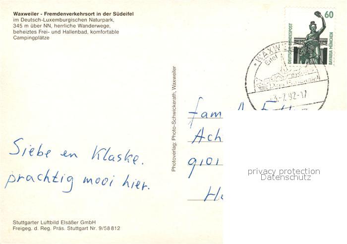 73172831 alte Postkarte Waxweiler Fliegeraufnahme Suedeifel postalisch gelaufen Erhaltung siehe scans [LiesaD40] KatCode: 11110007232322