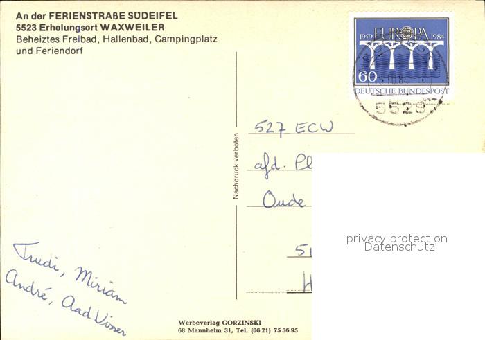72483779 alte Postkarte Waxweiler Freibad Campingplatz Feriendorf Panorama Ferienstrasse Suedeifel postalisch gelaufen Erhaltung siehe scans KatCode: 11110007232322