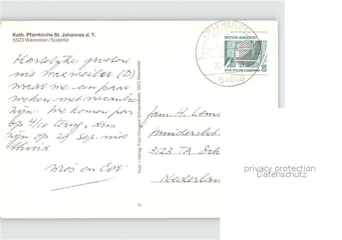 72473350 alte Postkarte Waxweiler Katholische Pfarrkirche St Johannes d T postalisch gelaufen Erhaltung siehe scans KatCode: 11110007232322