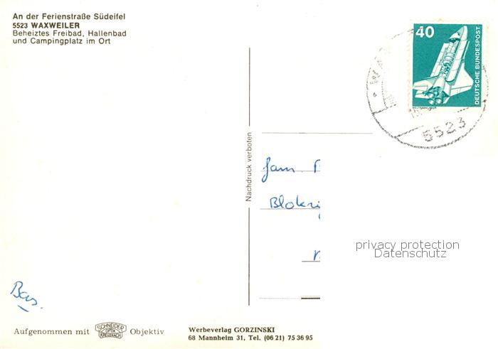 73813210 alte Postkarte Waxweiler Panorama Frei und Hallenbad Campingplatz Bruecke postalisch gelaufen Erhaltung siehe scans [WerneD78] KatCode: 11110007232322
