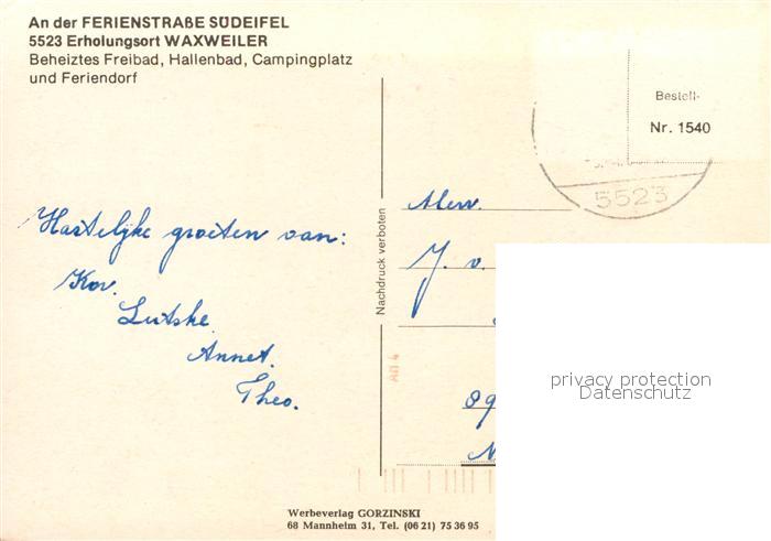 72936286 alte Postkarte Waxweiler Panorama Ortsmotiv Schwimmbad Musikkapelle Camping postalisch gelaufen Erhaltung siehe scans [WerneD78] KatCode: 11110007232322