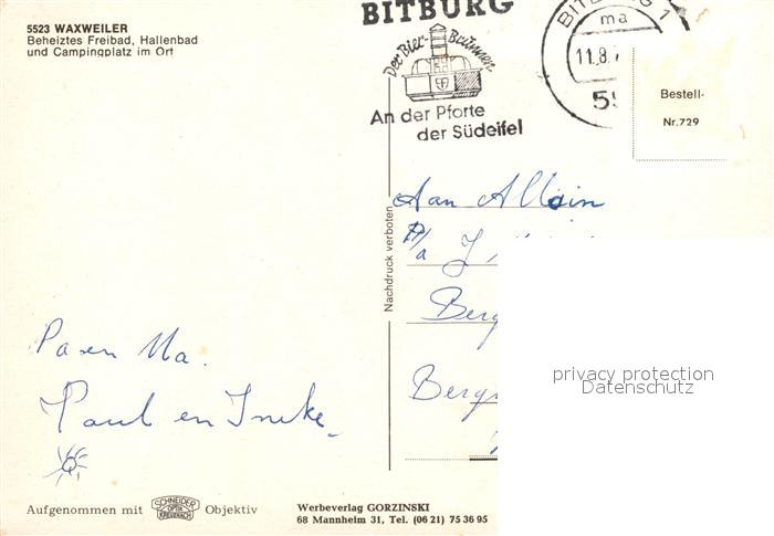 73306585 alte Postkarte Waxweiler Panorama postalisch gelaufen Erhaltung siehe scans [WerneD78] KatCode: 11110007232322