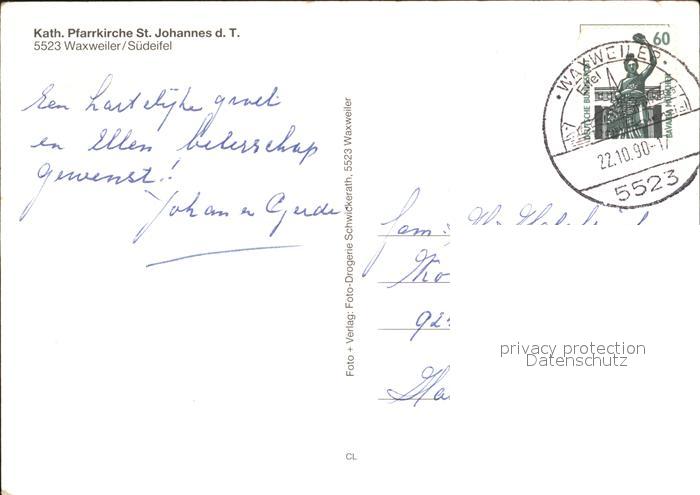 72254481 alte Postkarte Waxweiler Pfarrkirche postalisch gelaufen Erhaltung siehe scans KatCode: 11110007232322