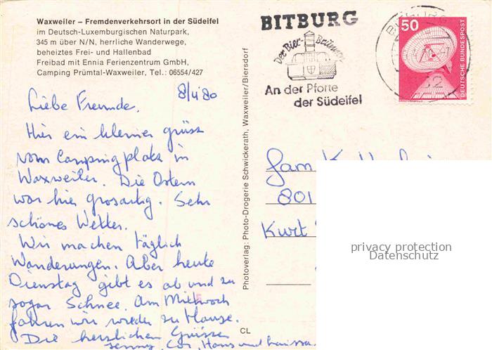 74020674 Waxweiler Rheinland-Pfalz Panorama Deutsch-Luxemburgischer Naturpark Freibad postalisch gelaufen Fliegeraufnahme Erhaltung siehe scans [FriedD77] Fliegeraufnahme alte Postkarte Frie Katcode 11110007232322