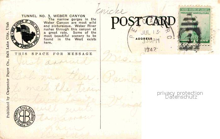 72637159 old postcard Weber Canyon Weber River Tunnel No 3 postalisch gelaufen Erhaltung siehe scans [FriedD77] KatCode: 14140470000000
