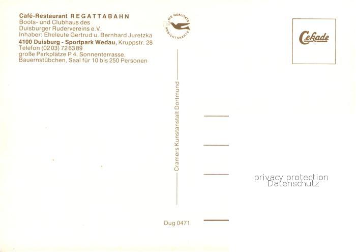 73568830 Wedau Duisburg Cafe Restaurant Regattabahn Sportpark postalisch nicht gelaufen Erhaltung siehe scans [FriedD77] KatCode: 11110005112000