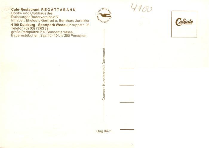 73875813 Wedau Duisburg Cafe Restaurant Regattabahn Terrasse Gastraum Sportpark postalisch nicht gelaufen Erhaltung siehe scans [FriedD77] KatCode: 11110005112000