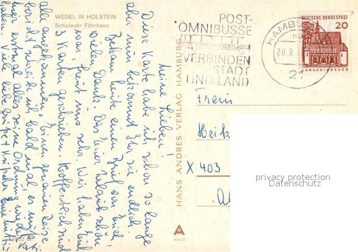 73160686 alte Postkarte Wedel Pinneberg Willkomm Hoeft Schiffsbegruessung Schulauer Faehrhaus Faehre postalisch gelaufen Erhaltung siehe scans [FriedD77] KatCode: 11110001056050