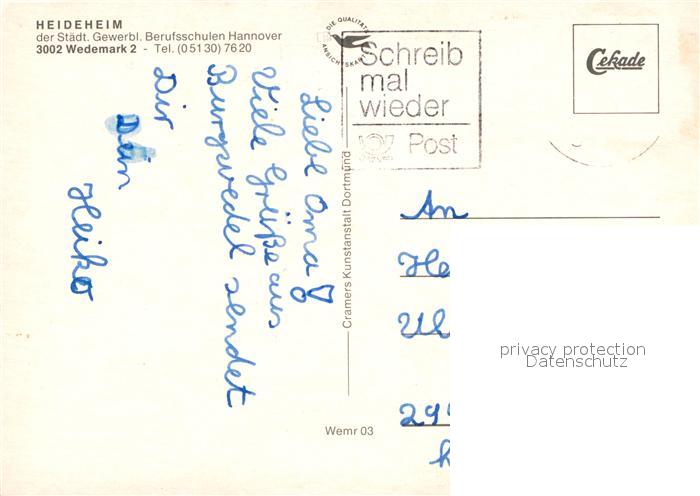 72990570 alte Postkarte Wedemark Heideheim postalisch gelaufen Erhaltung siehe scans [WerneD78] KatCode: 11110003241019