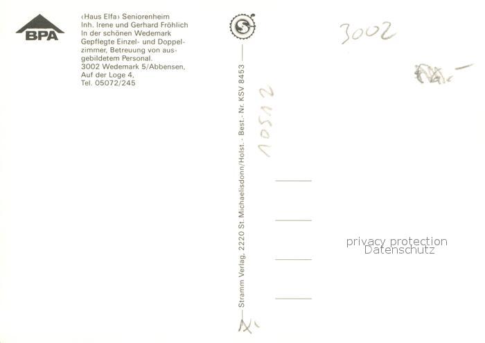 73666220 Wedemark Seniorenheim Fr?hlich Haus Elfa postalisch nicht gelaufen Erhaltung siehe scans [LiesaD40] KatCode: 11110003241019