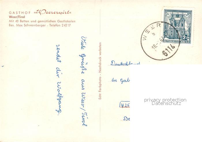 13237368 alte Postkarte Weer Gasthof Weererwirt Gaststube postalisch gelaufen Erhaltung siehe scans [FriedD77] KatCode: 11390335070937
