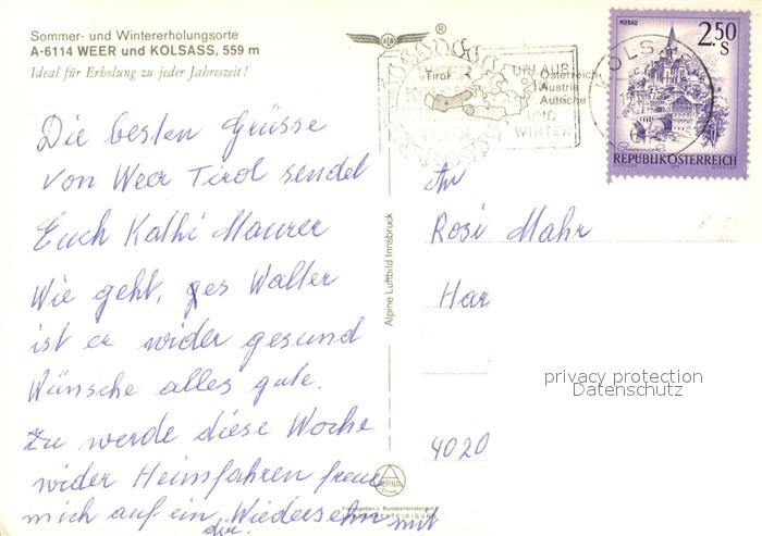 73288064 alte Postkarte Weer Kolsass Fliegeraufnahme postalisch gelaufen Erhaltung siehe scans [NatalD47] KatCode: 11390335070937