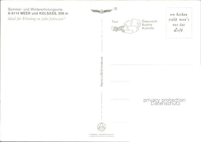 72531649 Weer und Kolsass Fliegeraufnahme postalisch nicht gelaufen Erhaltung siehe scans [FriedD77 kt118box] KatCode: 11390335070937
