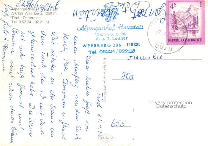 73026208 alte Postkarte Weerberg Alpengaststaette Hausstatt postalisch gelaufen Erhaltung siehe scans [PaolaD17] KatCode: 11390335070938