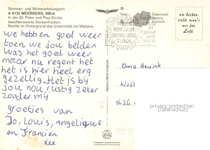 13339165 alte Postkarte Weerberg Fliegeraufnahme postalisch gelaufen Erhaltung siehe scans [WerneD78] KatCode: 11390335070938