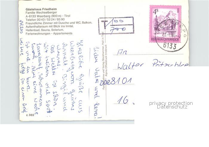 72526761 alte Postkarte Weerberg Gaestehaus Friedheim postalisch gelaufen Erhaltung siehe scans KatCode: 11390335070938