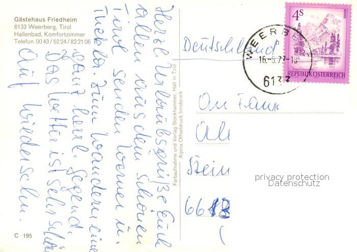 73588082 alte Postkarte Weerberg G?sethaus Friedheim postalisch gelaufen Erhaltung siehe scans [PaolaD17] KatCode: 11390335070938