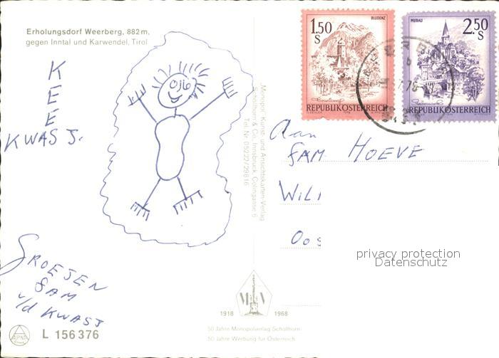 72092222 alte Postkarte Weerberg im Inntal mit Karwendel postalisch gelaufen Erhaltung siehe scans KatCode: 11390335070938