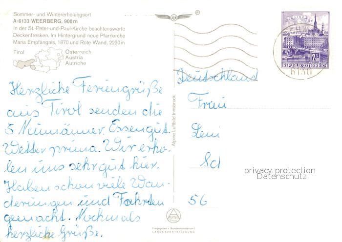 73516678 alte Postkarte Weerberg Peter und Paul Kirche Fliegeraufnahme postalisch gelaufen Erhaltung siehe scans [KathaD81] KatCode: 11390335070938