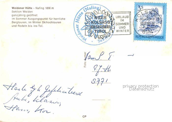 72662992 alte Postkarte Weerberg Weidener Huette postalisch gelaufen Erhaltung siehe scans [WerneD78] KatCode: 11390335070938