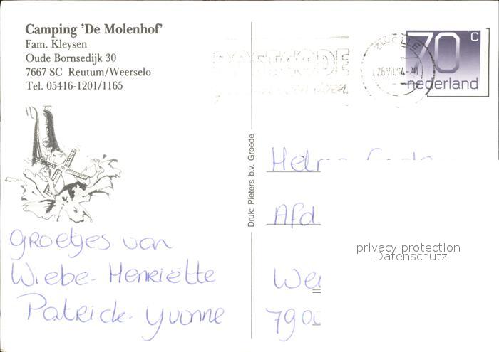 old postcard Weerselo Camping De Molenhof Bungalows Tennisplatz Muehle postalisch gelaufen Erhaltung siehe scans