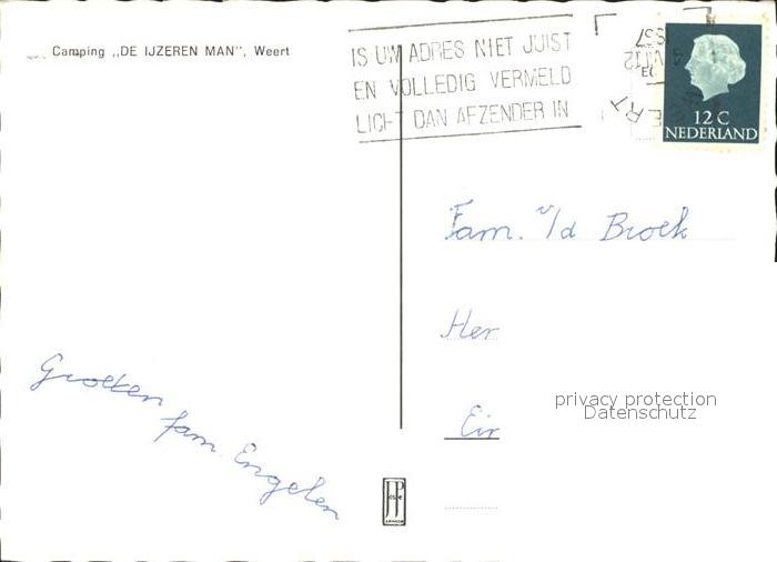 old postcard Weert Netherlands Camping de ijseren Man postalisch gelaufen Erhaltung siehe scans