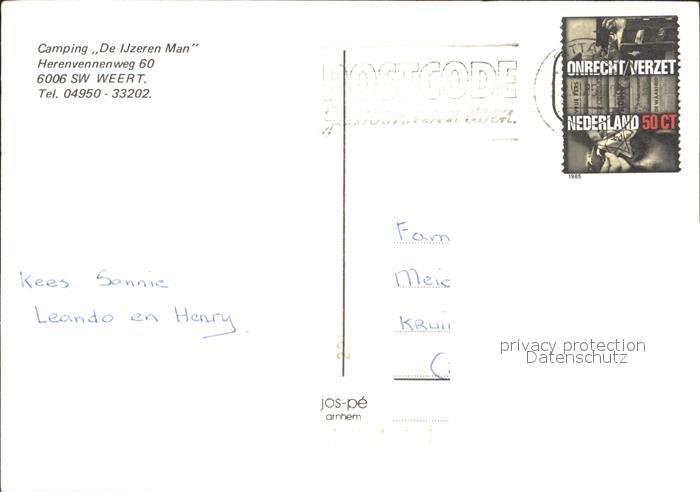 old postcard Weert Netherlands Camping De Ijzeren Man postalisch gelaufen Erhaltung siehe scans