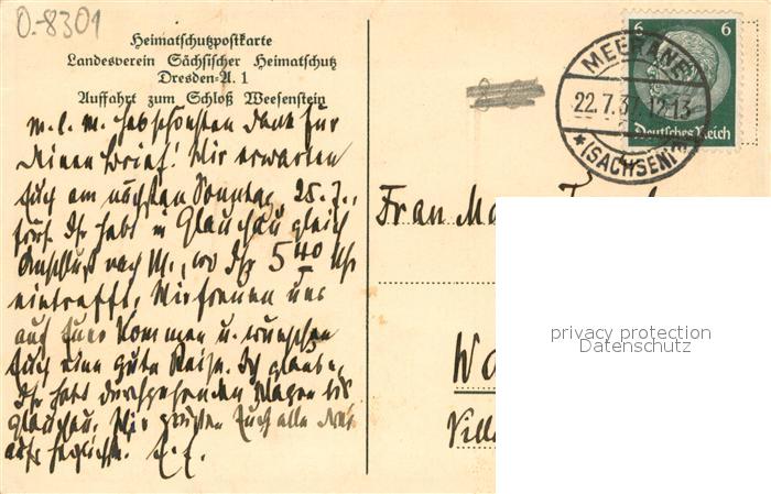 73697769 alte Postkarte Weesenstein Auffahrt zum Schloss Weesenstein postalisch gelaufen Erhaltung siehe scans [LiesaD40] KatCode: 11110014287260