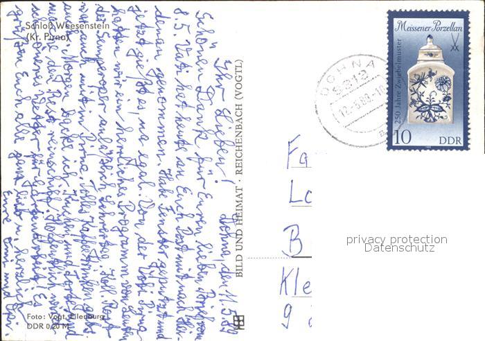 72008051 alte Postkarte Weesenstein Saechsische Schweiz Schloss Weesenstein postalisch gelaufen Erhaltung siehe scans KatCode: 11110014262000