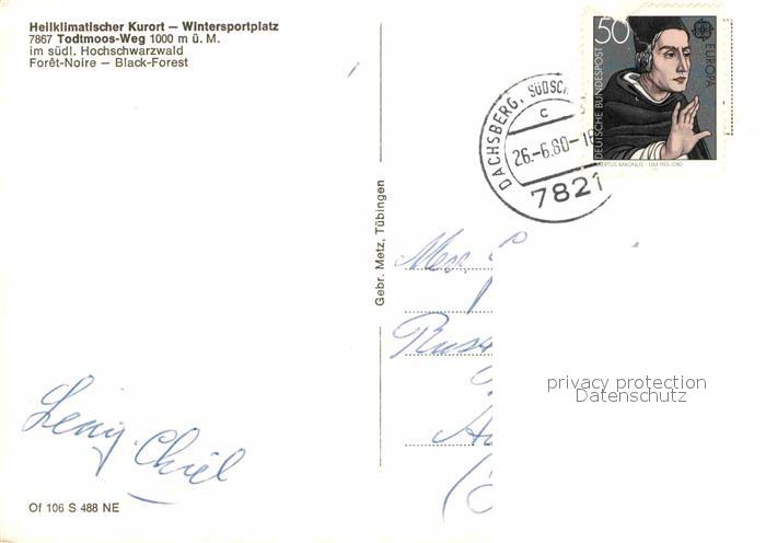 72655050 alte Postkarte Weg Todtmoos postalisch gelaufen Erhaltung siehe scans [LiesaD40] KatCode: 11110008337108