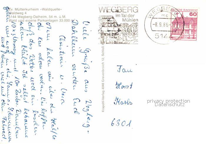 72888036 alte Postkarte Wegberg Evangelisches Muetterkurheim Waldquelle postalisch gelaufen Erhaltung siehe scans [AndreD76] KatCode: 11110005370040