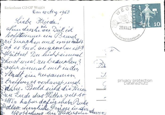 11648456 alte Postkarte Weggis Vierwaldstaettersee Ferienhaus CO-OP postalisch gelaufen KatCode: 11470120385898