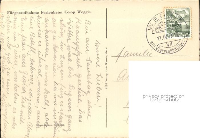11648237 alte Postkarte Weggis Vierwaldstaettersee Fliegeraufnahme Ferienheim Co-op postalisch gelaufen Erhaltung siehe scans KatCode: 11470120385898