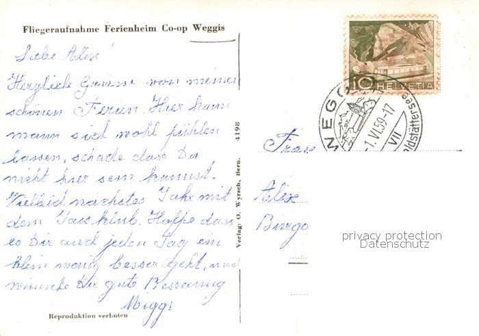 13806749 alte Postkarte Weggis Vierwaldstaettersee Fliegeraufnahme Ferienheim Coop postalisch gelaufen Erhaltung siehe scans [LiesaD40] KatCode: 11470120385898