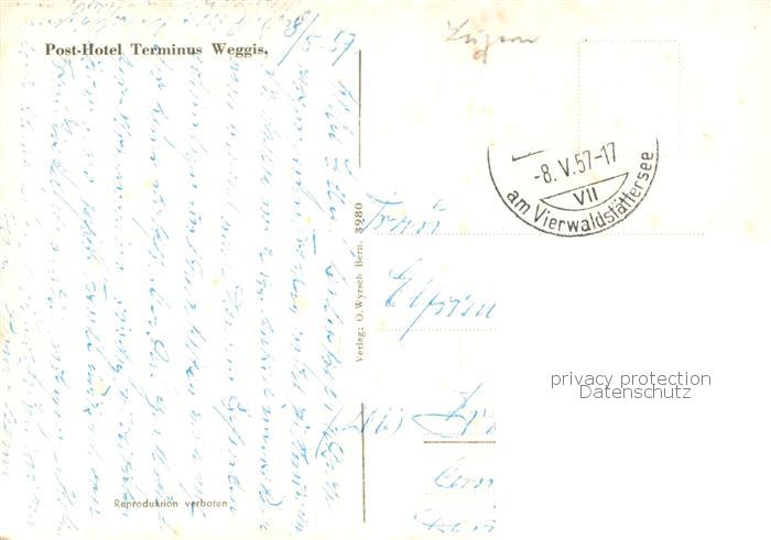 13793010 alte Postkarte Weggis Vierwaldstaettersee Fliegeraufnahme Post-Hotel Terminus postalisch gelaufen Erhaltung siehe scans [LiesaD40] KatCode: 11470120385898