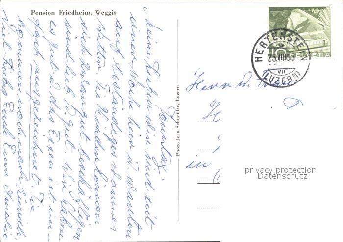 11648447 alte Postkarte Weggis Vierwaldstaettersee Pension Friedheim postalisch gelaufen Erhaltung siehe scans KatCode: 11470120385898