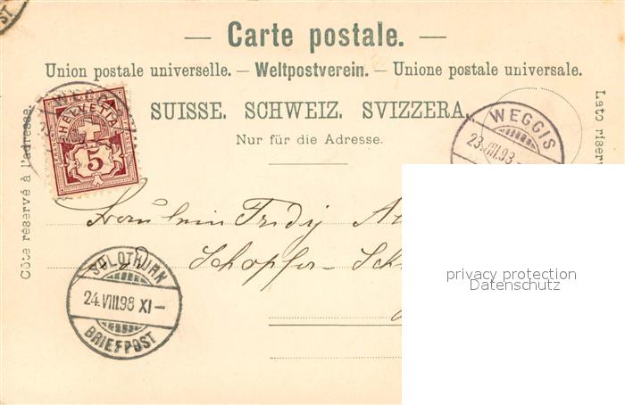 13745817 alte Postkarte Weggis Vierwaldstaettersee Teilansicht m. Kirchturm postalisch gelaufen Erhaltung siehe scans [LiesaD40] KatCode: 11470120385898