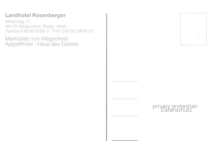 73334867 Wegscheid Niederbayern Landhotel Rosenberger postalisch nicht gelaufen Erhaltung siehe scans [LiesaD40] KatCode: 11110009275156
