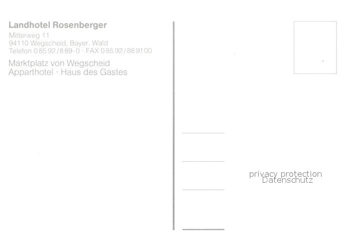 73334866 Wegscheid Niederbayern Landhotel Rosenberger postalisch nicht gelaufen Erhaltung siehe scans [LiesaD40] KatCode: 11110009275156