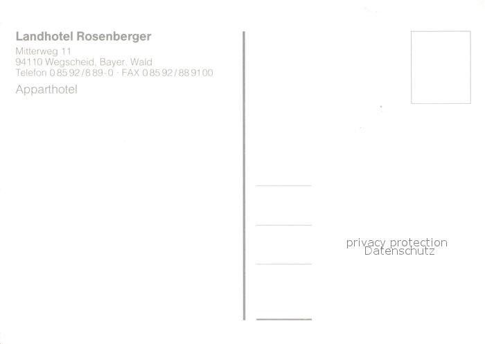 73641800 Wegscheid Niederbayern Landhotel Rosenberger Apparthotel postalisch nicht gelaufen Erhaltung siehe scans [FriedD77] KatCode: 11110009275156