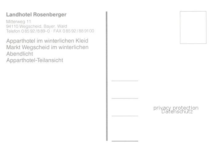 73334868 Wegscheid Niederbayern Landhotel Rosenberger postalisch nicht gelaufen Erhaltung siehe scans [LiesaD40] KatCode: 11110009275156