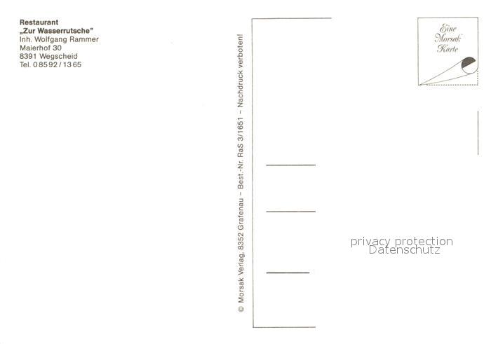 73596788 Wegscheid Niederbayern Rannasee Restaurant zur Wasserrutsche postalisch nicht gelaufen Erhaltung siehe scans [WerneD78] KatCode: 11110009275156