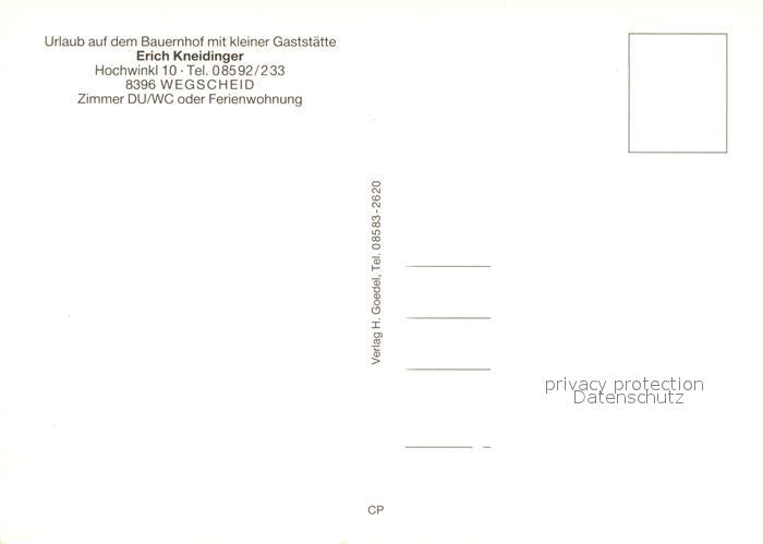 73124333 Wegscheid Niederbayern Urlaub Bauernhof Kneidinger postalisch nicht gelaufen Erhaltung siehe scans [KathaD81] KatCode: 11110009275156