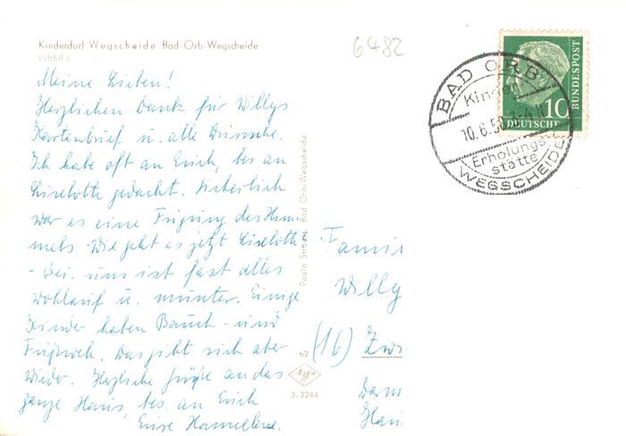 73874873 alte Postkarte Wegscheide Bad Orb Kinderdorf Fliegeraufnahme postalisch gelaufen Erhaltung siehe scans [WerneD78] KatCode: 11110006435001