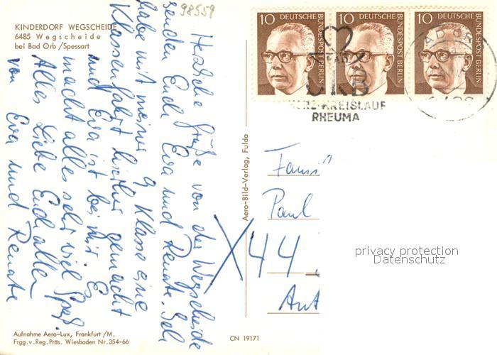 73647268 alte Postkarte Wegscheide Bad Orb Kinderdorf Fliegeraufnahme postalisch gelaufen Erhaltung siehe scans [FriedD77] KatCode: 11110006435001