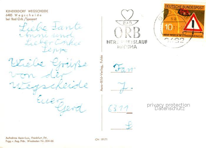 73227039 alte Postkarte Wegscheide Bad Orb Kinderdorf Fliegeraufnahme postalisch gelaufen Erhaltung siehe scans [FriedD77] KatCode: 11110006435001